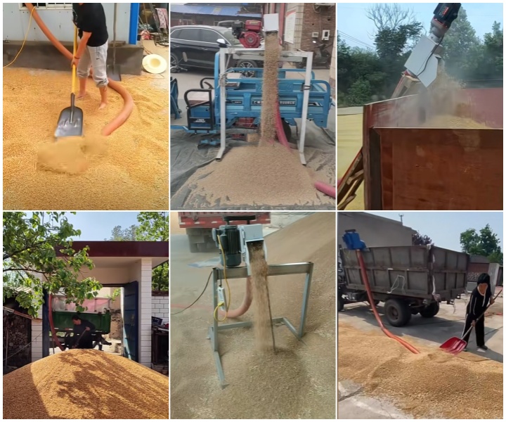 田間收糧:中小型移動款適配農(nóng)戶或合作社,可將晾曬后的糧食從糧場直接吸入糧囤,或裝入運輸車輛,避免人工扛運的勞累與損耗。